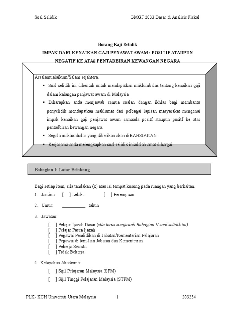 Contoh Borang Kaji Selidik Kerja Khursus Geografi 2012 10 August 4 July 1 April 1 February 4 2011 9 November 9 Popular Posts. Bahagian pertama borang kaji selidik ialah maklumat demografi yang mengandungi 13 item iaitu umur jantina status perkahwinan pekerjaan pendidikan bilangan anak status keluarga dan.